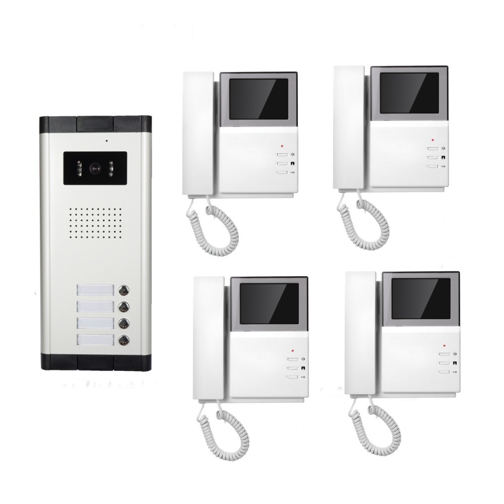 4 Family Multi Apartment Video Doorbell ปุ่มตรง Multi Apartment System โทรศัพท์มือถือหน้าจอ 4.3 นิ้ว