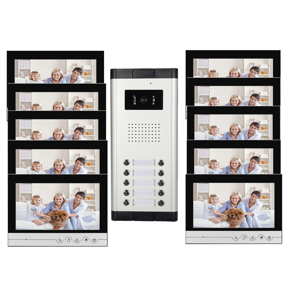 4Wire Apartment Video Doorbell ระบบอินเตอร์คอมสำหรับอาคาร 10 แฟลตพร้อมระบบตรวจสอบประตูขนาด 7 นิ้ว